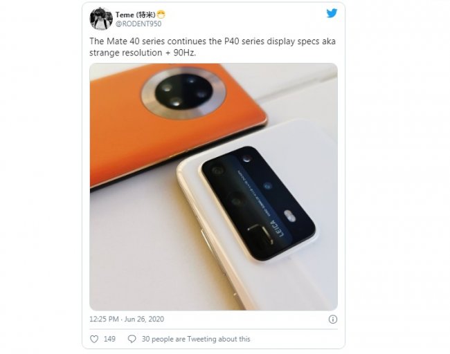Huawei переживает не лучшие времена, тем не менее компания планирует выпустить долгожданную флагманскую серию Mate 40 в срок. По слухам, мы увидим новое семейство в октябре этого года. Ожидается, что вместе с флагманскими смартфонами будут представлены также смарт-часы Mate Watch и новая версия HarmonyOS. Сегодня в Сеть утекла новая информация о дисплее грядущего флагманского смартфона. Информация сайта - «dima-gid.ru» Данными поделился инсайдер, скрывающийся под ником @RODENT950. Согласно его информации, новые устройства получат дисплеи с частотой обновления 90 Гц, а не 120 Гц, как предполагалось ранее. Разрешение матрицы составит 1200 ? 2640 пикселей. Также, судя по свежей информации, флагманское семейство будет основано на процессоре HiSilicon Kirin 1000, вместо Kirin 1020, как предполагалось ранее, который, тем не менее, будет выполнен по 5-нм техпроцессу. Кто займётся производством чипов для китайского техногиганта по-прежнему остаётся загадкой. Информация сайта - «dima-gid.ru» Напомним, что ранее в Сети появилась информация о том, что флагманские смартфоны Huawei серии Mate 40 будут оснащаться передовыми камерами FreeForm в связке с девятилинзовыми объективами 9P. :