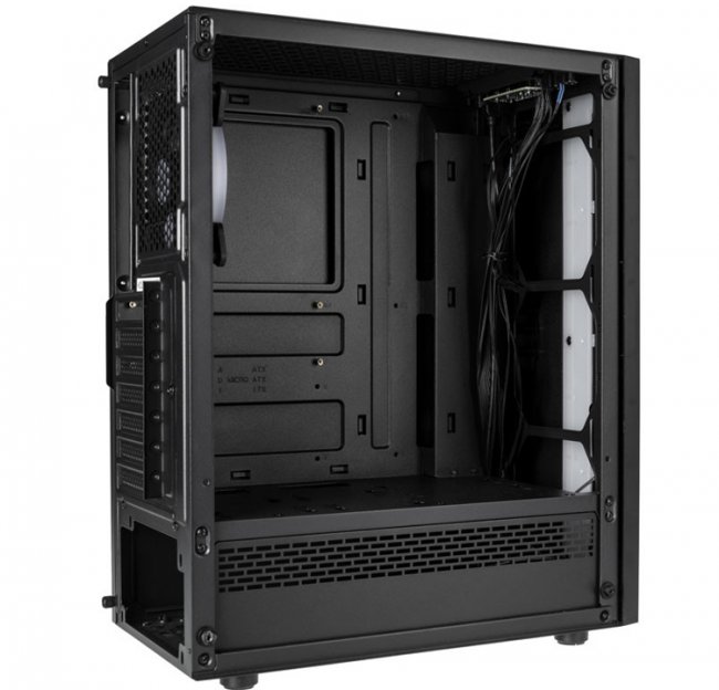 Боковая стенка изготовлена из закалённого стекла. Сзади изначально смонтирован 120-миллиметровый ARGB-вентилятор. Контролировать работу подсветки можно при помощи кнопки в верхней части или через совместимую материнскую плату.