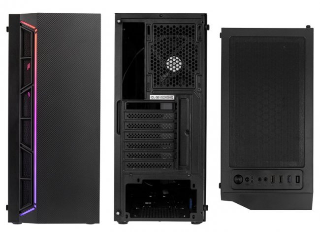 Новинка, выполненная в чёрном цвете, получила асимметричную фронтальную панель. Её отделка стилизована под углеродное волокно, а в левой части находятся вентиляционные отверстия и полоса адресуемой многоцветной подсветки ARGB.