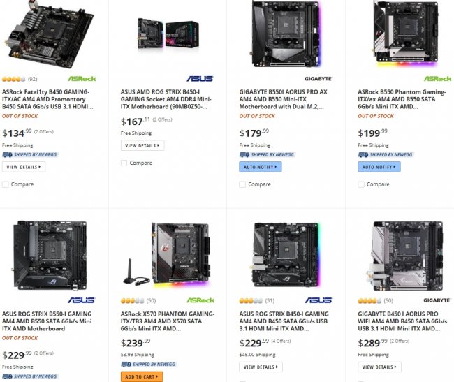 А вот собрать компактную систему на AMD будет куда дороже. На момент написания новости самой дешёвой Socket AM4-платой формата Mini-ITX, доступной на Newegg, была модель ASRock на флагманском чипсете AMD X570 стоимостью $240. В целом же магазин упоминает платы такого форм-фактора на базе AMD A320 и стоимостью $99, но их в наличии нет.