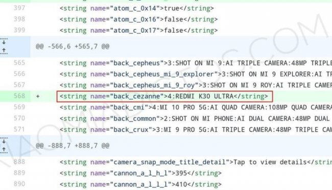 Информация о новинке обнаружена в коде прошивки MIUI 12. Устройство фигурирует под названием Redmi K30 Ultra и кодовым именем Cezanne.