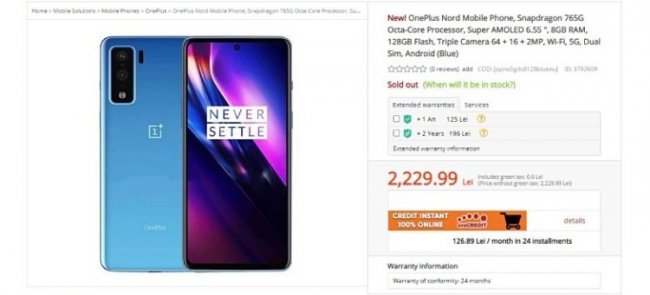 Несмотря на тот факт, что OnePlus обещала, что стоимость Nord не превысит $500, его цена на румынском сайте составляет RON 2229,99, что примерно равно $535. Однако эта информация вызывает сомнения, поскольку опубликованный на странице рендер смартфона не соответствует тому, что демонстрируют последние утечки. Таким образом, можно предположить, что страница является всего лишь «заглушкой». С другой стороны, не стоит отбрасывать вероятность того, что перед нами региональная версия смартфона или другое устройство серии Nord.