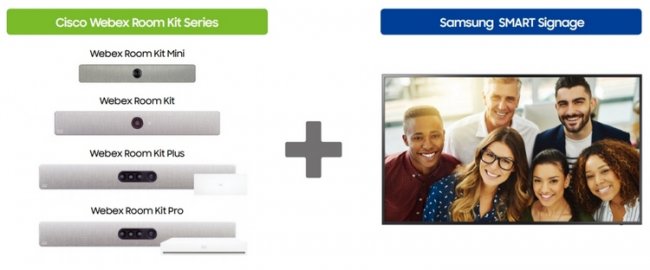 Очевидно, что, комплект для качественной корпоративной видеосвязи неполон без хорошего дисплея. По словам Cisco, для её систем Webex Room идеально подходят дисплеи Samsung SMART Signage. За счёт поддержки двунаправленной последовательной шины Consumer Electronics Control (CEC) совместная настройка параметров системы видеосвязи и дисплея в такой комбинации происходит автоматически, что значительно упрощает процесс использования.