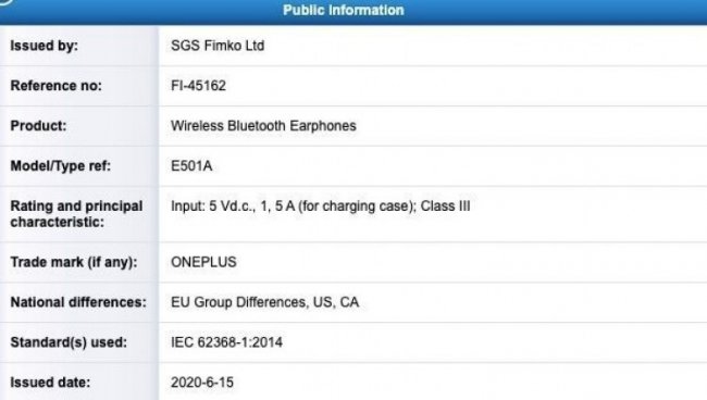 Данные, опубликованные на сайте регулятора, раскрывают номер модели E501A и однозначно указывают на то, что речь идёт именно о беспроводных наушниках. Однако название «Buds» нигде не фигурирует, так что конечное устройство может получить другое имя. Также раскрыта информация о том, что мощность зарядки, поддерживаемая кейсом составит 7,5 Вт. Заряд батареи будет пополнятся током силой 1,5 А при напряжении 5 В.