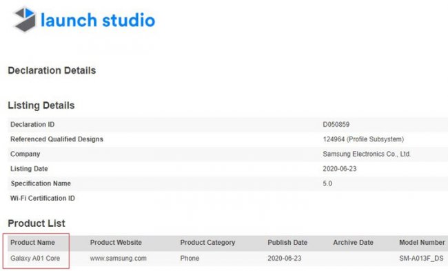 Ресурс SamMobile опубликовал характеристики смартфона начального уровня Samsung SM-A013F, который, как ожидается, выйдет на коммерческий рынок под названием Galaxy A01 Core.