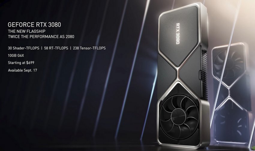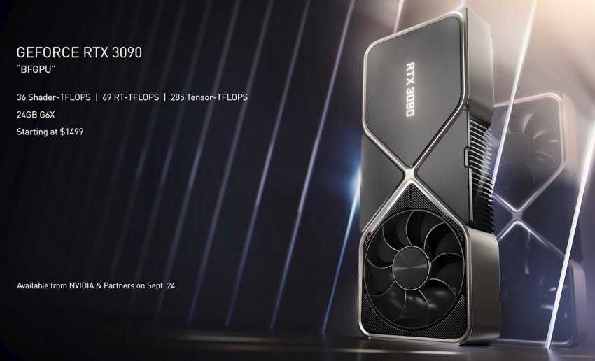 Первой из новинок в продажу поступит GeForce RTX 3080. Это произойдёт уже в этом месяце — 17 сентября. Стоимость сохранится на уровне предшественников — $699 (в России — 63 500 руб.). Более доступная GeForce RTX 3070 появится на прилавках когда-то в октябре, и цена её составит $499 (45 500 руб.) — опять же, на уровне предшественницы. Наконец, GeForce RTX 3090 поступит в продажу 24 сентября, сразу в исполнении как NVIDIA, так и её партнёров, по цене... $1499 (137 000 руб.). Здесь без повышения цены не обошлось.