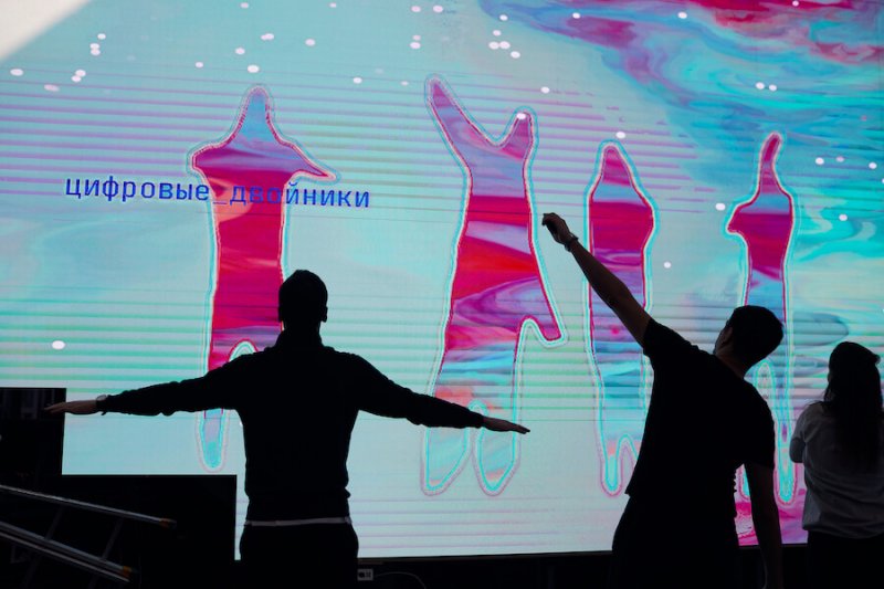 На Петербургском международном экономическом форуме компания «Газпром нефть», совместно с художником Максимом Жестковым, запустила арт-проект «Цифровые двойники». Центральная часть стенда компании – медиафасад, на котором нейросеть создаёт визуальные динамические копии участников форума.