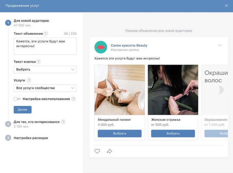 ВКонтакте стало доступно автопродвижение услуг. Продвижение можно настроить буквально в три простых шага.