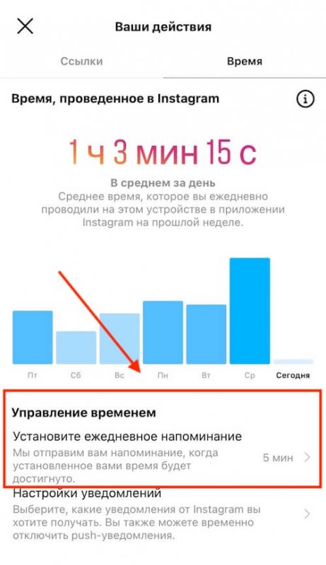 При этом, инструменты управления временем в Instagram появились давно. Если зайти в раздел «Ваше время — Время», то можно установить ежедневные напоминания. Поэтому функция в большей степени выглядит, как косметическое изменение и появление новых подсказок.