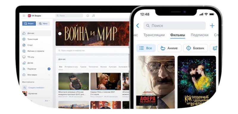 Новая видеовитрина VK Видео включает в себя: фильмы, сериалы, телешоу, спортивные матчи, киберспортивные трансляции и другие видеоролики. Весь контент распределен по тематическим разделам, при этом все они доступны бесплатно и в высоком качестве — вплоть до Full HD и 4К.
