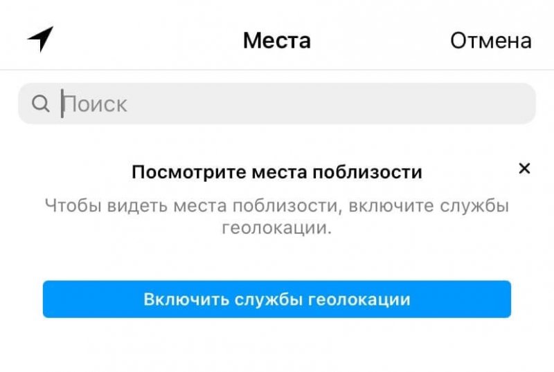 Чтобы добавить местоположение, также кликаем на него и переходим в новое окно. На открывшейся странице можно выбрать одно из ближайших место или добавить геолокацию в сторис из поиска.