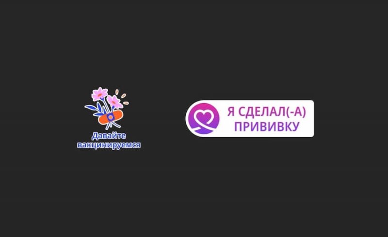 Плюс у каждого стикера есть несколько вариантов отображения — кликайте по стикеру, чтобы его поменять. Со сменой дизайна, меняется и надпись: «Я сделал прививку», «Давайте вакцинируемся» или «Вакцины спасают жизни».