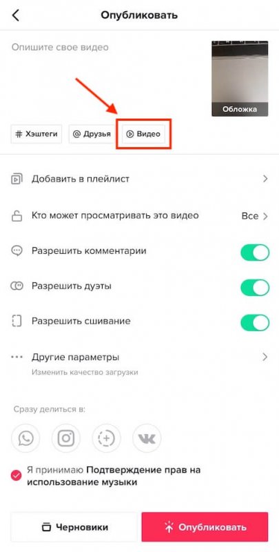 Как добавить ссылку на видео в описание ролика в Тик-Ток