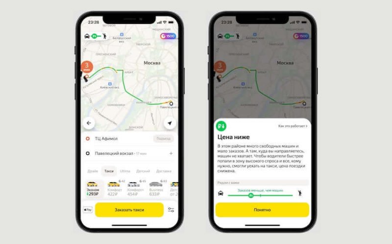 Алгоритмы динамического ценообразования автоматически совершают несколько тысяч операций каждую секунду, чтобы вычислить оптимальную стоимость, которая привлечет больше водителей в час-пик и позволит пользователю уехать из любого места и в любое время. Когда спрос снижается, система подсказывает водителям, в каких районах машин не хватает и где их ждут новые клиенты.
