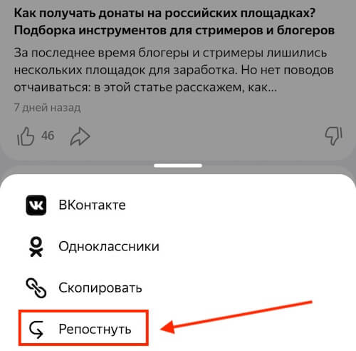 Яндекс.Дзен представил новую опцию для каналов — репосты.