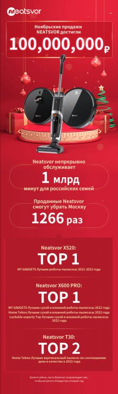 ✔Продажи пылесосов Neatsvor в России в ноябре превысили 100 миллионов рублей! - «Новости»