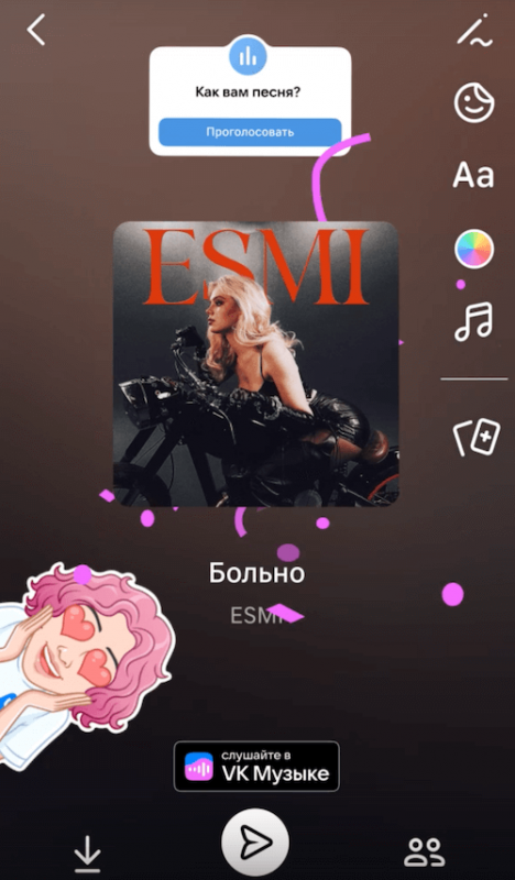 Шаг 3. Закончите оформление истории — например, добавьте опрос или стикер «Мнения».