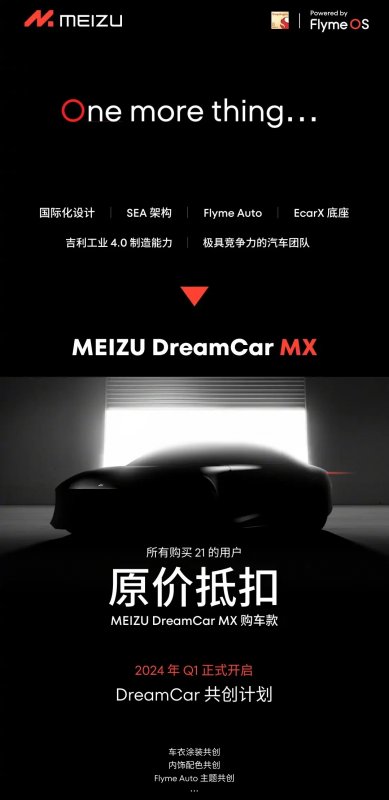 Известно, что автомобиль будет использовать возможности платформы Flyme Auto. Более подробно о DreamCar MX пообещали рассказать в первом квартале 2024 года.