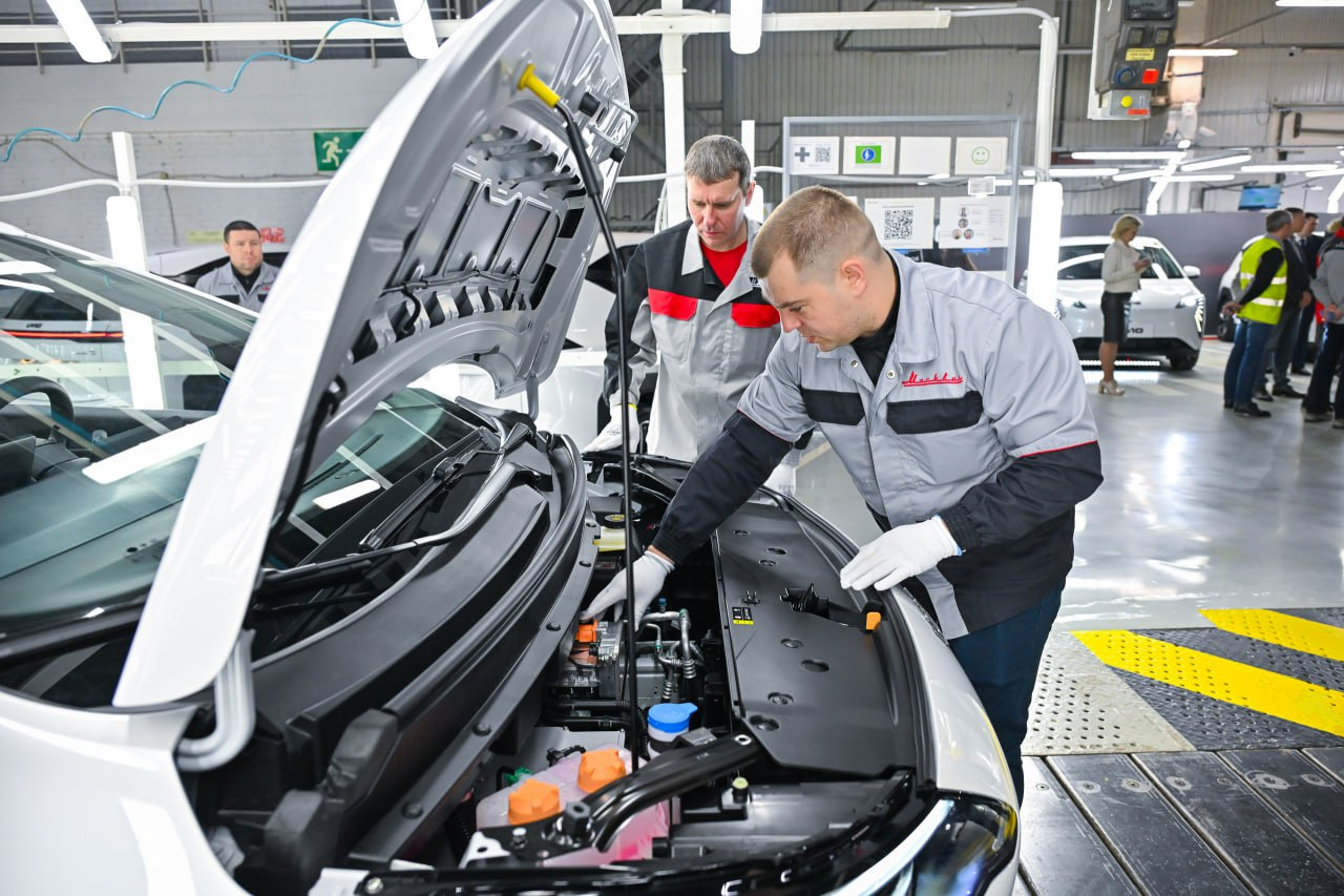 На предприятии «Москвич» запущено производство электромобилей и гибридов бренда Umo, разработанных компанией EVM, сообщает РБК. Церемонию запуска производства провели первый вице-премьер России Денис Мантуров, мэр Москвы Сергей Собянин и советник по корпоративному развитию «Яндекса» Алексей Кудрин.