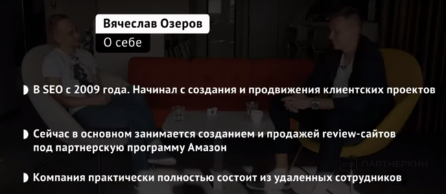 Вячеслав Озеров в своем последнем интервью каналу «Точка G» рассказал, как он с командой зарабатывает десятки тысяч долларов в месяц благодаря сайтам под партнерскую программу Амазон. Также он поделился некоторыми подробностями работы с Амазоном и своей тактикой продаж сайтов с обзорами товаров.