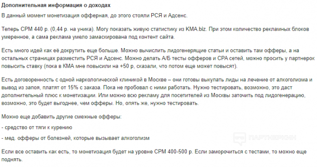 Когда-то в далеком 2005 году я поступил на службу в крупную западную фармацевтическую компанию на скромную должность. Генеральный директор открывал загадочный отдел — новых маркетинговых технологий. Коллеги взялись осваивать инновационные направления во всемирной паутине. Мой департамент и я восприняли это скептически. Лучше к докторам сходить на прием, пусть они рекомендуют. Через определенное время почти все новаторы покинули фирму. И через десять лет, сам уже занимаясь журналистикой, я с удивлением узнал в основателе проекта «Батенька, да вы трансформер» бывшего студента второго курса МГУ и сотрудника отдела тех самых новых технологий, которых я не принимал. К чему столь длительное вступление? К тому, что digital-маркетинг ворвался в самые потайные уголки медицины. Даже в такую ретроградную ее часть, как психиатрия и наркология. Об этом и поговорим сегодня. Партнерские программы в медицине В классической медицине до сих пор актуально живое партнерское соглашение. Доктор назначает рецепт на лекарство лояльного бренда, заранее зная размер вознаграждения за каждый прописанный блистер. То же самое происходит и в интернете, особенно в Instagram. Вот как этот специалист, например: Будет столько же подписчиков — можно смело звонить фармацевтическим гигантам. Комиссия в среднем составляет около 10%, в зависимости от цены искомого товара. Разберем детально более специфические варианты с реабилитацией наркозависимых и неизменным ее спутником – терапией гепатита С. Они идут рука об руку. А вот способы заработка в интернете на этих задачах различаются. Здесь халат уже не требуется. Монитор, клавиатура, навыки SEO или контекстной рекламы, да знания партнерских программ. Фейковые сайты в наркологии. Небольшое заблуждение Посмотрите на этот интересный проект в интернете: Или такой: А вот главный врач в сети В Контакте. Там он консультирует и рекомендует качественные клиники. За вознаграждение от них, естественно: Даже был вчера в сети и давно уже заблокировал меня, как конкурента. Как вы думаете, есть ли центр на самом деле? Конечно, нет. И доктора такого нет и в помине, им управляет совершенно обычный человек, сделавший еще несколько сайтов-агрегаторов на подобную тему. Вот еще парочка примеров: У подобных служб нет ни одного филиала. Однако владелецы сайтов зарабатывают неплохо. За одну результативную заявку в Москве они могут получать около 80 000 рублей в месяц в случае долгосрочной госпитализации в стационар. В два раза меньше комиссионные, если это Казань или Новгород. В небольших городах ставки падают в разы, но и конкуренция тоже. Я не могу обнародовать офферы клиник — это коммерческая тайна, но порядок цифр вам ясен. Аккуратно и постепенно, но информация все же попадает в сеть. Так, за одну результативную заявку в клинику Израиля можно получить: Это реальное предложение, так как в среднем месяц лечения там стоит $5 000. То есть таковой и является комиссия при длительной госпитализации. При месячной она будет, как указана в объявлении, $1 000. Региональный представитель может лить трафик по собственному усмотрению, главное — лиды и их результативность. Таких партнерских программ много. Дабы подтвердить это еще одним живым примером, привожу в пример продажу уже развитого сайта-агрегатора: Минимальная цена — 134 400 рублей, оптимальная — 403 200 рубл