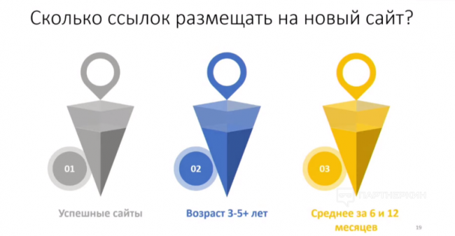 У любого вебмастера возникает вопрос: «Сколько ссылок размещать на новом сайте?». Ищем и изучаем успешные сайты-конкуренты в своей тематике, возраст которых от 3 до 5 лет. Рекомендуется смотреть средние значения прироста ссылочной массы на старте, через 6 и 12 месяцев.