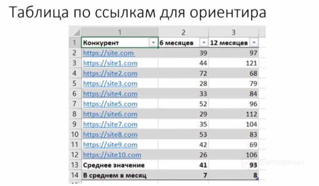 Анализируем успешные площадки в своей нише, оцениваем темпы прироста ссылочной массы и составляем таблицу. Она будет служить ориентиром для вебмастера и его молодого сайта.