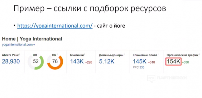 В поиске хорошо ранжируются площадки с подборками ресурсов. Ссылка с такого сайта может принести ощутимую прибавку к трафику. Стоит лишь проанализировать свою нишу и найти в ней подобные каталоги или подборки.