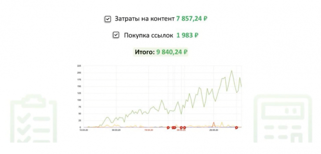 - Опубликовал 5 статей. Потрачено 7 857 рублей. Материалы объемные: 25-30 тысяч знаков;
