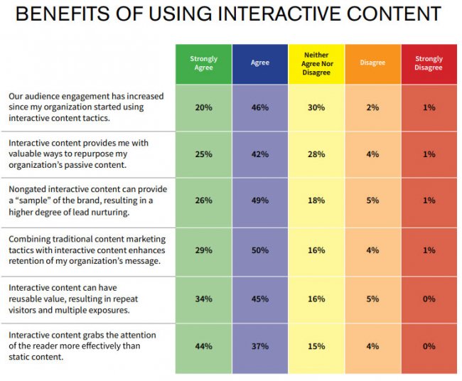 (во всех случаях применения интерактивного контента он дает положительный результат — с этим согласны более 65-80% опрошенных)