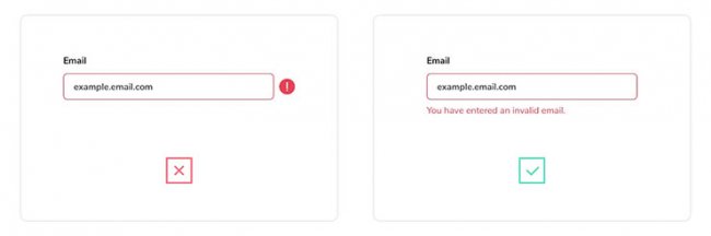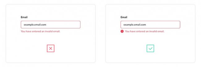Иконки для получения фидбека от пользователей в основном применяются для указания статуса отправки формы (то есть, прошла ли она успешно или нет). Некоторые разработчики считают, что для обозначения ошибочного статуса красных сообщений будет достаточно, поскольку это позволяет сохранить минималистичный внешний вид. Однако, люди, страдающие дальтонизмом, могут вообще не заметить разницы между обычным сообщением и тем, что свидетельствует про ошибку. Поэтому, чтобы максимально охватить всю свою аудиторию, лучше дополнительно добавлять какую-то иконку/индикатор.