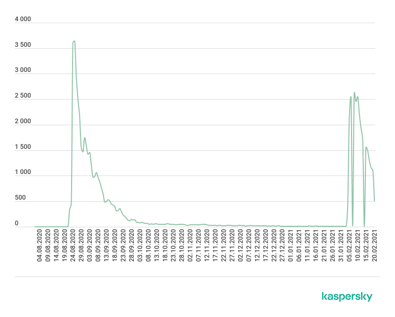 С начала февраля 2021 года фейковые приложения пытались установить более 7 000 человек. На пике кампании атаке подвергались более 2500 уникальных пользователей в день, преимущественно из России и стран СНГ.