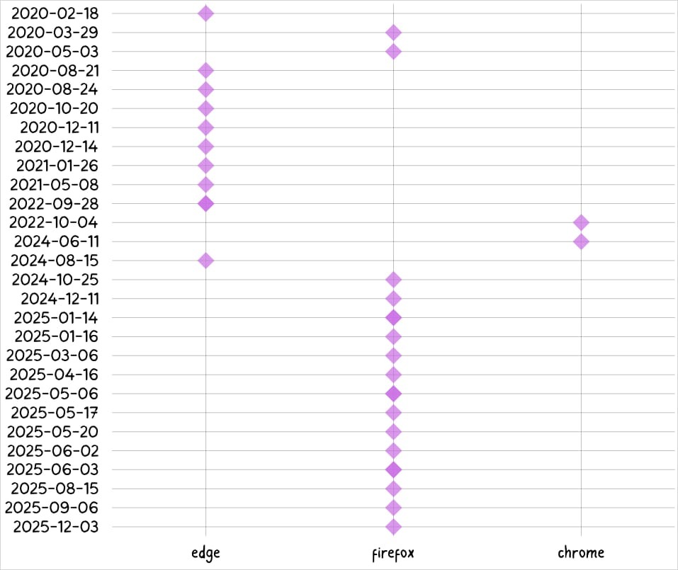По данным исследователей, кампания началась с Microsoft Edge, а затем распространилась на Firefox и Chrome. При этом часть опасных расширений присутствовала в официальных магазинах еще с 2020 года.