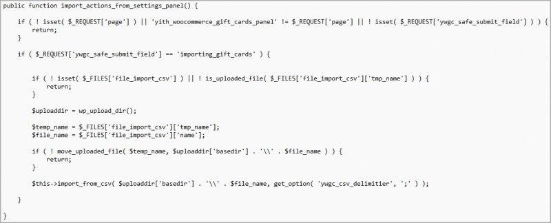Плагин YITH WooCommerce Gift Cards Premium позволяет администраторам сайтов продавать подарочные карты в своих интернет-магазинах. В ноябре в нем обнаружили критический баг CVE-2022-45359 (9,8 балла по шкале оценки уязвимостей CVSS), который позволяет неаутентифицированным злоумышленникам загружать файлы на уязвимые сайты (в том числе веб-шеллы, обеспечивающие полный контроль над ресурсом).