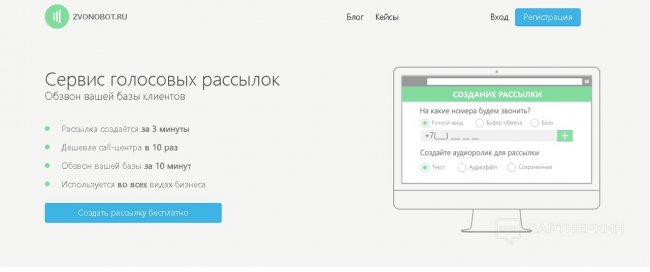 Попробуйте внедрить новый инструмент в свою воронку продаж бесплатно: читатели Партнеркина могут использовать промокод partnerkin на 300 рублей. Этого хватит, чтобы уведомить несколько сотен ваших клиентов и получить первые лиды. Ваш персональный менеджер поможет найти эффективные способы внедрения и проработает скрипты звонков. Проводите AB-тестирования аудиороликов, текстов смс и повышайте конверсию. Проводите повторные рассылки по накопленной базе на другие офферы и выжимайте из своего трафика максимум.