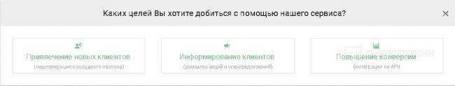 Сразу после прохождения регистрации, вы можете выбрать цель, которой хотите достичь с помощью сервиса: привлечение новых клиентов, информирование клиентов и повышение конверсии. Каждая ячейка предлагает шаблон звонка, который подойдет именно под вашу сферу бизнеса. При регистрации на счет поступает 10 бонусных рублей, что позволяет вам провести «тест-драйв» сервиса и опробовать рассылку бесплатно.
