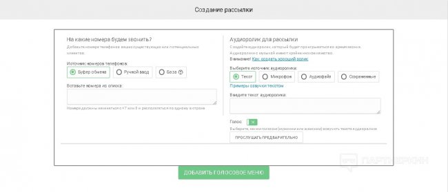 Вы также можете внедрить сценарий нажатия клавиш в разговоре (IVR-меню), чтобы сделать его более интерактивным, а также задействовать функцию распознавания речи, что, в некоторых случаях, поможет существенно увеличить эффективность рассылок.