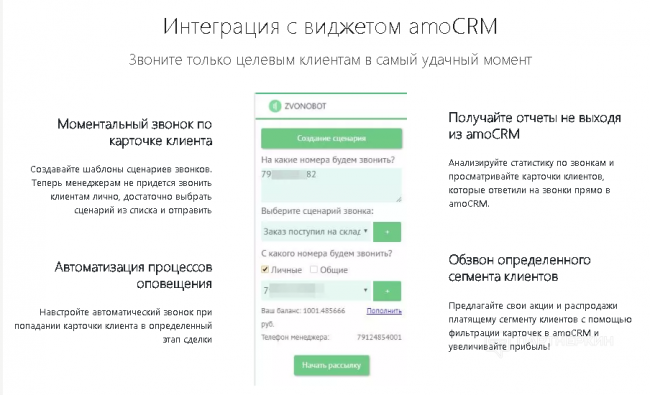 Для удобство пользователей, Zvonobot интегрирован с amoCRM, в связи с чем появилась возможность работать с цифровой воронкой amoCRM.