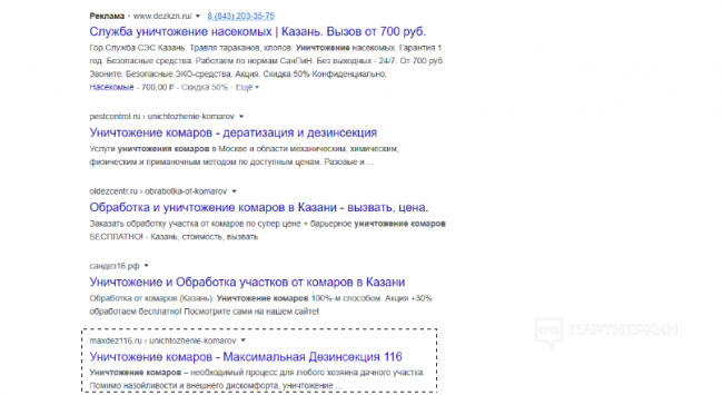 Результаты поисковой выдачи на сегодняшний день.Поисковый запрос «уничтожение комаров» от 22.02.2020:
