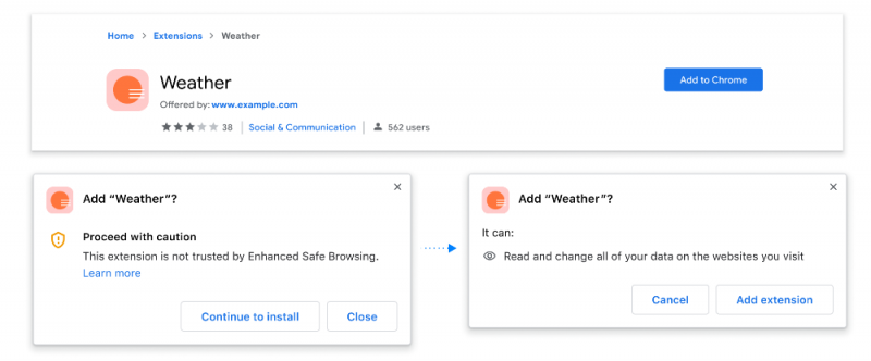 «Теперь Enhanced Safe Browsing будет предлагать дополнительную защиту при установке нового расширения из Chrome Web Store. Диалоговое окно сообщит вам, если расширение, которое вы собираетесь установить, не входит в список расширений, которым доверяет Enhanced Safe Browsing», — рассказывают в Google.
