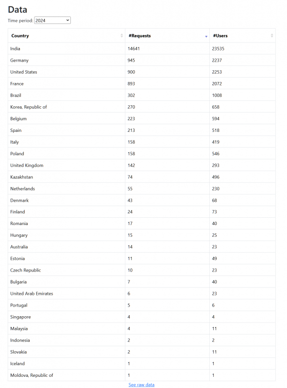 Стоит отметить, что американские власти далеко не первые по количеству таких запросов. По статистике краудфандингового проекта, который курирует сотрудник Human Rights Watch Этьен Майнье (Etienne Maynier), в этом вопросе с большим отрывом лидирует Индия: в 2024 году Telegram выполнил 14 641 запрос из этой страны и раскрыл правоохранителям данные 23 535 пользователей.
