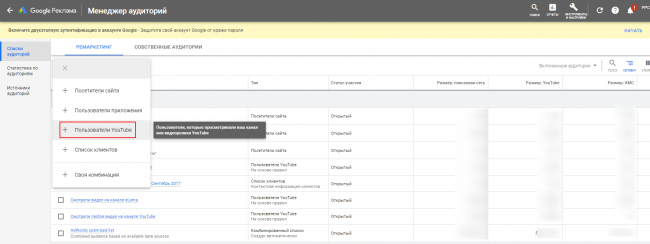 Создайте аудиторию тех, кто взаимодействовал с видео или каналом в YouTube.
