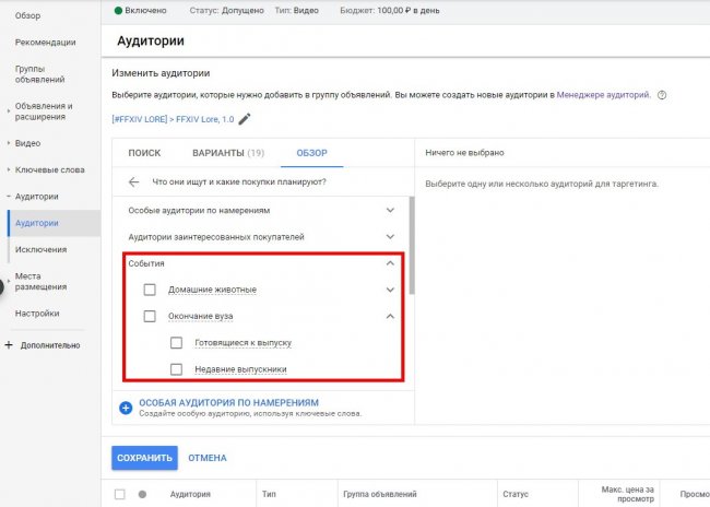 Сейчас, кроме видеорекламы на YouTube, таргетинг работает в кампаниях для Контекстно-медийной сети Google.