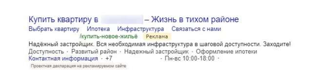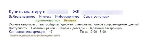 В рекламе для зрелой аудитории подчеркиваем наличие инфраструктуры и тихий микрорайон и указываем надежного застройщика, ведь часто люди старших лет с недоверием относятся к информации в интернете: