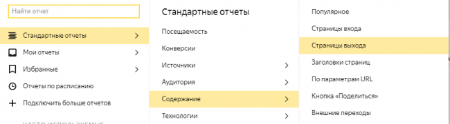 Этот стандартный отчет позволяет определить разделы или страницы сайта, с которых чаще всего уходят посетители.