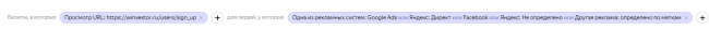 Например, задаем сегмент посетителей, пришедших по рекламе, а также посещавших страницу с контактами.