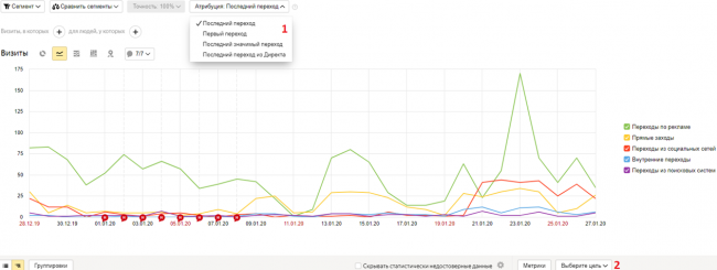 С недавнего времени в Метрике по умолчанию заработала модель атрибуции «Последний значимый переход». К значимым источникам трафика относятся: