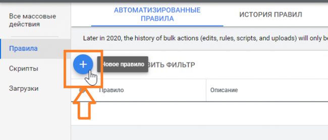В Google Ads есть отдельный раздел для массовых действий, он доступен в меню «Инструменты и настройки». Здесь собраны все массовые действия, загрузки, скрипты и правила.