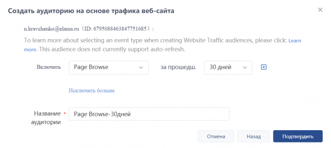 Через 30 дней активного ведения рекламы в TikTok вам может стать доступно автообновление аудиторий ремаркетинга. Вы увидите уведомление об этом в рекламном кабинете. Однако все ранее созданные аудитории автоматически не обновятся, их все равно нужно будет пересоздать. В дальнейшем они всегда будут актуальны.