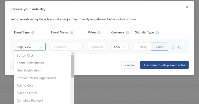 Если планируете настраивать конверсии на посещение разных страниц сайта, определите для них разные типы событий (Event Type), чтобы в дальнейшем использовать эти данные для оптимизации кампаний и ремаркетинга.